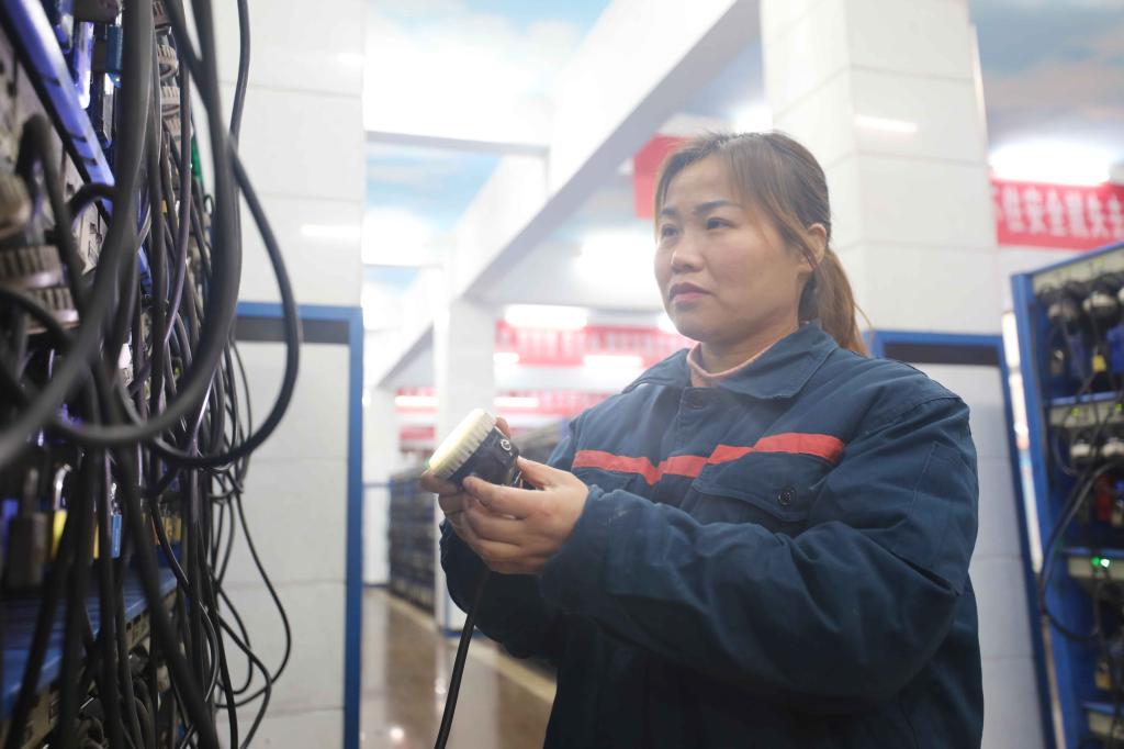“這顆螺絲松動(dòng)了,你抓緊安排處理。”安全員朱建成把現(xiàn)場(chǎng)發(fā)現(xiàn)的問(wèn)題反饋到班長(zhǎng)王磐。
